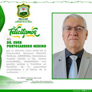 🔰 𝐒𝐚𝐥𝐮𝐝𝐨 𝐈𝐧𝐬𝐭𝐢𝐭𝐮𝐜𝐢𝐨𝐧𝐚𝐥 📃 🟢 La Universidad Nacional Agraria de la Selva – UNAS, a través de sus autoridades, expresa un fraternal saludo y reconocimiento al Dr. Ewer Portocarrero Merino, por su reciente elección como Rector de la Universidad Nacional Hermilio Valdizán – UNHEVAL. 🟢 Celebramos este nuevo capítulo en la gestión universitaria huanuqueña y […]