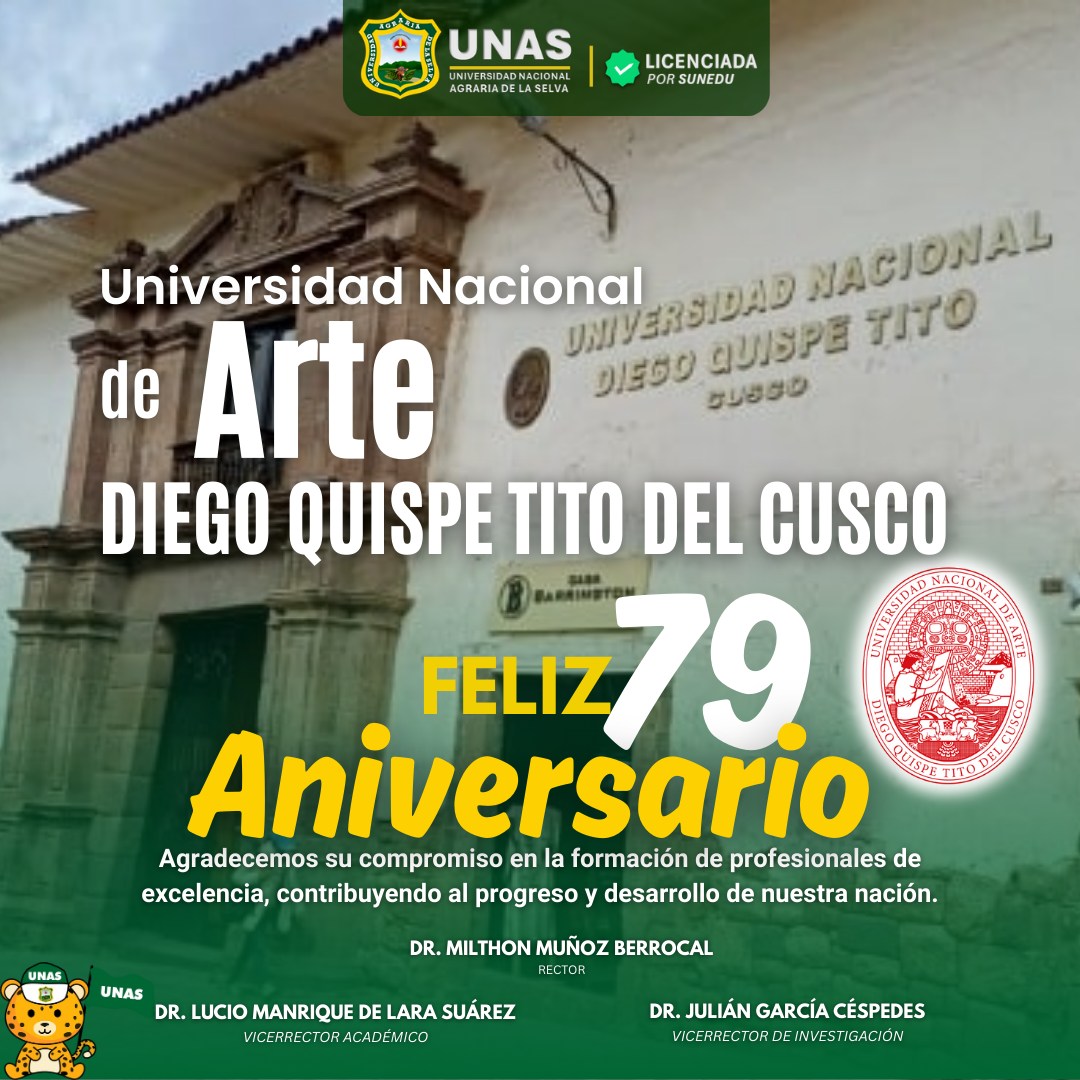 ๐ข La Universidad Nacional Agraria de la Selva extiende su saludo fraterno a la Universidad Nacional de Arte Diego Quispe Tito del Cusco, en su 79ยฐ aniversario.