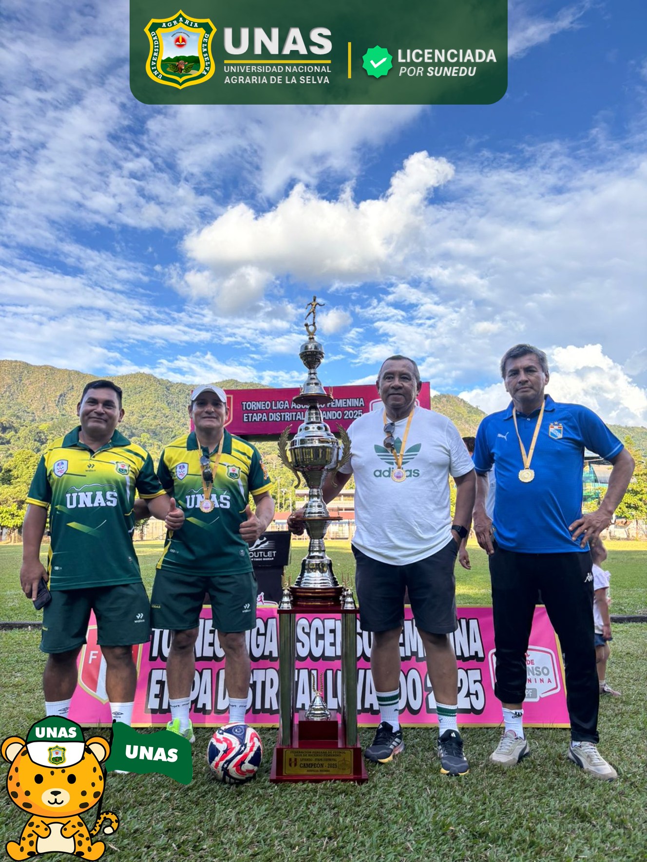 โ El rector de la UNAS, Dr. Milthon Muรฑoz Berrocal, manifestรณ su respaldo al equipo tรฉcnico y a las โbravas jugadorasโ, destacando el compromiso de la universidad con el desarrollo integral de sus estudiantes: โQueremos demostrar que tanto la parte acadรฉmica como el deporte van de la manoโ.