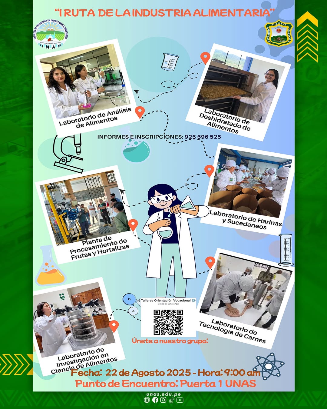 Participa en la 1ยฐ Ruta de la Ingenierรญa de Alimentos, un recorrido por nuestras รกreas de producciรณn ๐Ÿž๐Ÿฅซ๐Ÿซ y laboratorios ๐Ÿงฌ๐Ÿ”ฌ๐Ÿงช donde vivirรกs experiencias prรกcticas y conocerรกs de cerca la carrera que transforma el futuro.