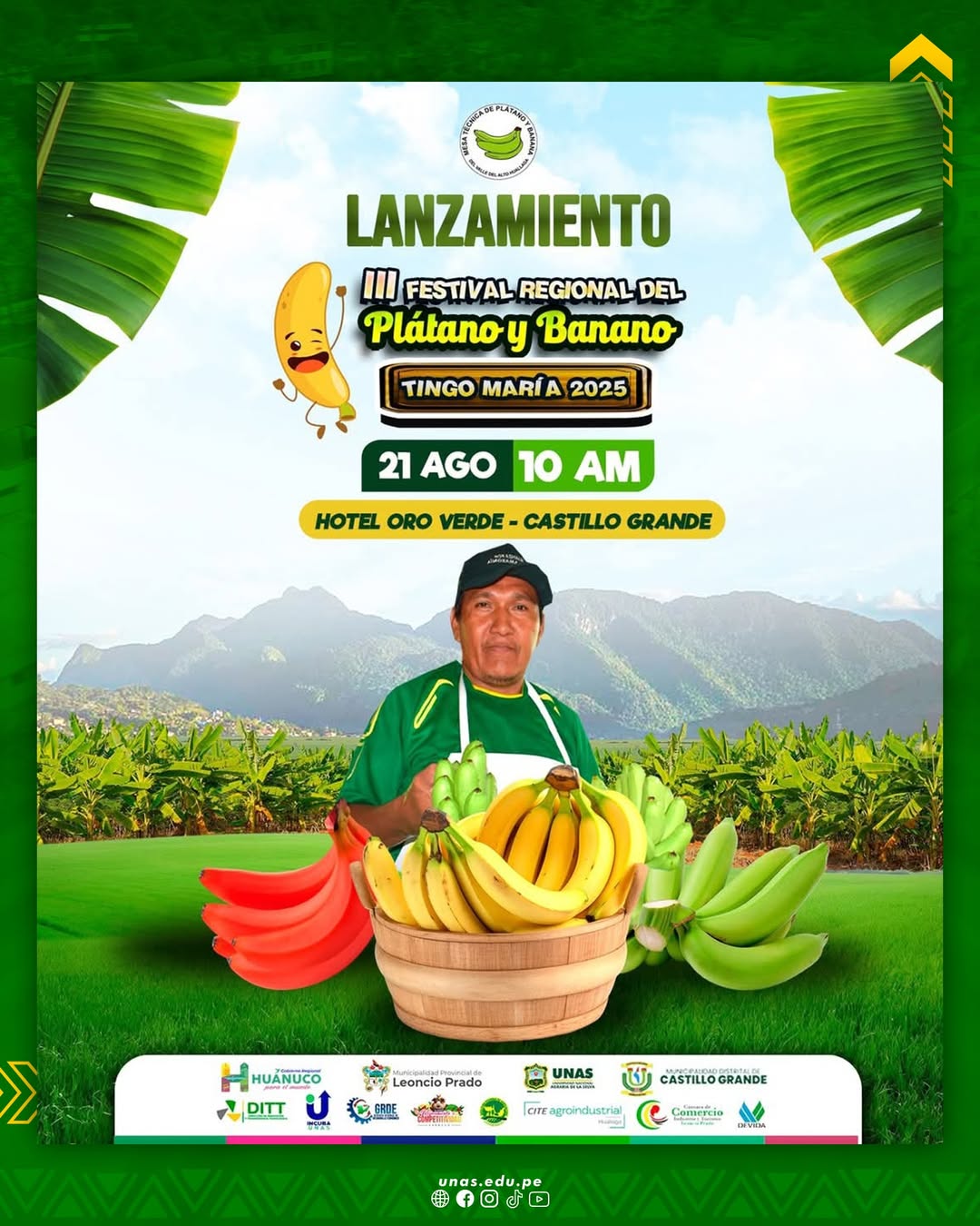 ✅ Lanzamiento oficial del III Festival Regional del Plátano y Banano – Tingo María 2025 🌱🍌 🎉.