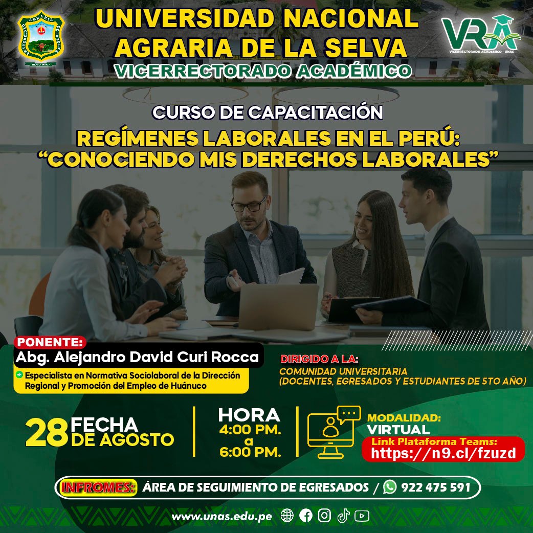 ๐ŸŸขInvita a la comunidad Universitaria (Docentes, Egresados y Estudiantes de 5to aรฑo) a participar del Curso de Capacitaciรณn: ยซ๐—ฅ๐—˜๐—šร๐— ๐—˜๐—ก๐—˜๐—ฆ ๐—Ÿ๐—”๐—•๐—ข๐—ฅ๐—”๐—Ÿ๐—˜๐—ฆ ๐—˜๐—ก ๐—˜๐—Ÿ ๐—ฃ๐—˜๐—ฅรš: ยซ๐—–๐—ข๐—ก๐—ข๐—–๐—œ๐—˜๐—ก๐——๐—ข ๐— ๐—œ๐—ฆ ๐——๐—˜๐—ฅ๐—˜๐—–๐—›๐—ข๐—ฆ ๐—Ÿ๐—”๐—•๐—ข๐—ฅ๐—”๐—Ÿ๐—˜๐—ฆยป.