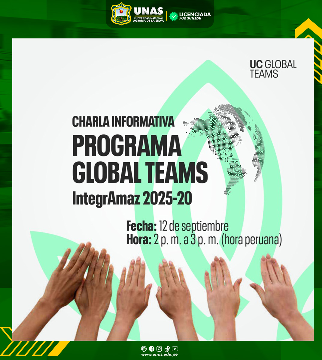 ๐ŸŸขEl Programa Global Teams es una iniciativa acadรฉmica de universidades amazรณnicas que reรบne a estudiantes de distintas nacionalidades y carreras para colaborar en equipos multidisciplinarios y multiculturales. El objetivo es aplicar la metodologรญa Design Thinking y otras herramientas para encontrar soluciones sostenibles a problemas globales vinculados a los Objetivos de Desarrollo Sostenible (ODS) y los intereses de los propios estudiantes.