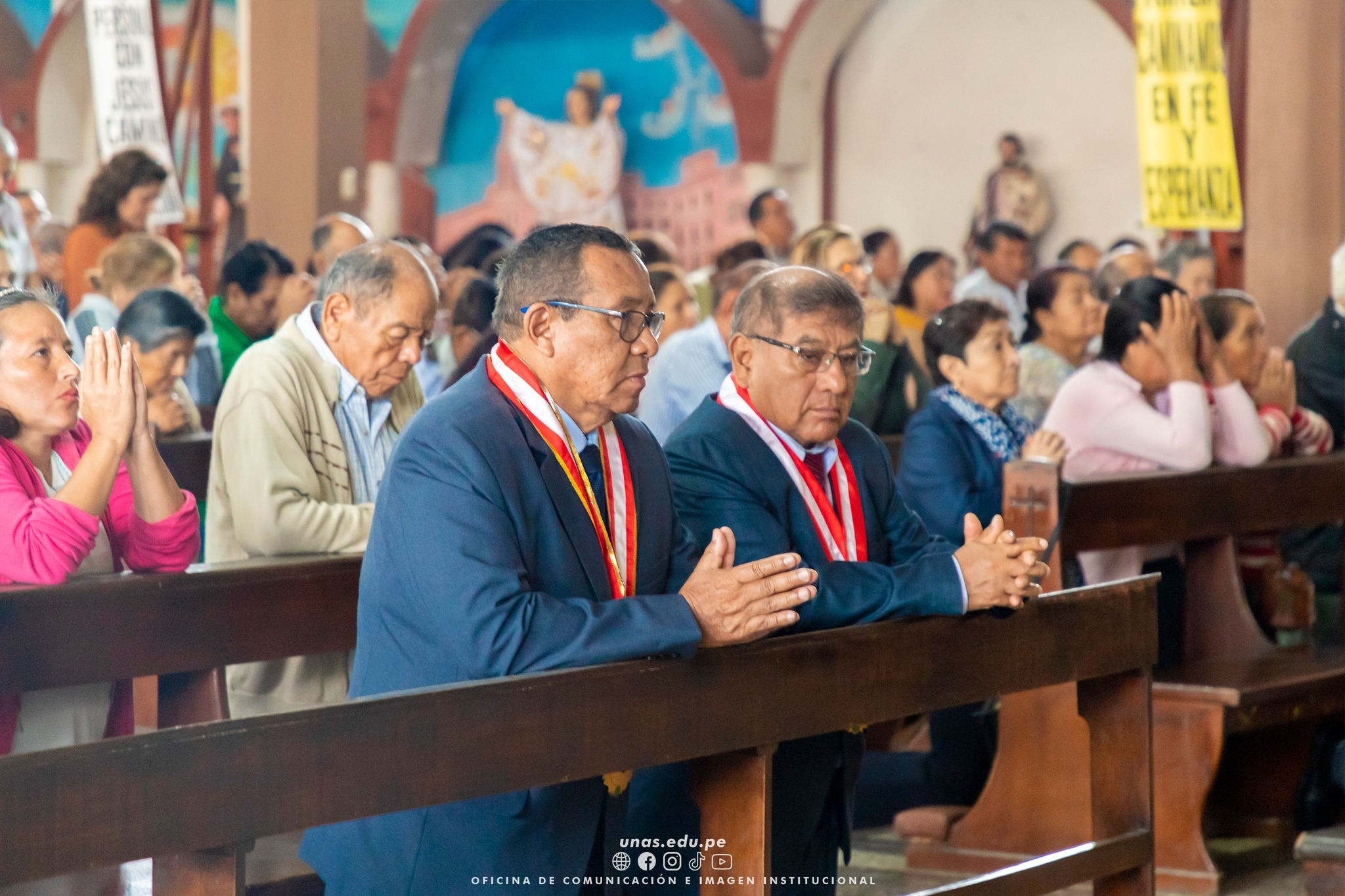 ๐ข El acto litรบrgico contรณ con la presencia del rector de la UNAS y presidente de la Asociaciรณn Nacional de Universidades Pรบblicas del Perรบ -ANUPP-, Dr. Milthon Muรฑoz Berrocal, quien estuvo acompaรฑado por el vicerrector acadรฉmico, Dr. Lucio Manrique de Lara Suรกrez, y el vicerrector de investigaciรณn, Dr. Juliรกn Garcรญa Cรฉspedes. Tambiรฉn asistieron decanos de las ocho facultades y directores de las quince escuelas profesionales que conforman la casa superior de estudios.