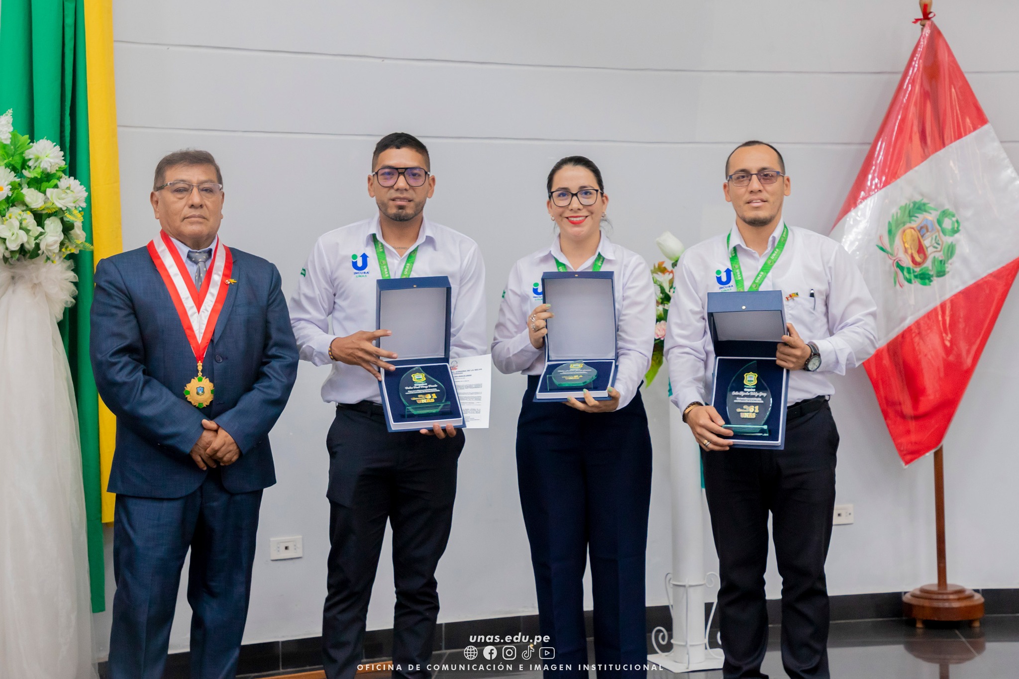 ๐ŸŸข Asimismo, fue premiado el equipo tรฉcnico de la Direcciรณn de Incubadora de Empresas de la UNAS, ganador del concurso ProInnรณvate del Ministerio de la Producciรณn en la categorรญa โ€œIncubadoras y aceleradoras de emprendimientos innovadoresโ€, con el proyecto โ€œIncuba UNAS: Transformando el ecosistema emprendedor de la Amazonรญaโ€. El equipo estรก liderado por la M.Sc. Melisa Zavala Guerrero, e integrado por el Lic. Carlos Hidalgo Gรณmez y el Econ. รŠdro Pรฉrez Pinedo. A todos los integrantes se les entregรณ una resoluciรณn firmada por el rector, junto con presentes institucionales en reconocimiento a su destacada labor.