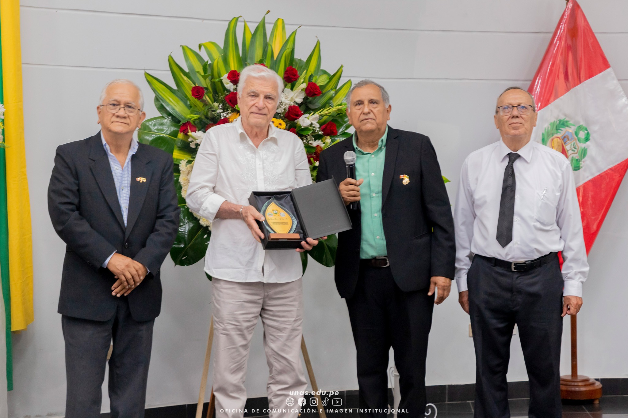 ๐ŸŸข Durante la ceremonia, los integrantes de la promociรณn โ€œBodas de Oroโ€ 1975 entregaron un significativo presente al maestro y exdocente universitario, Ing. Edmundo del รguila Morote, como muestra de gratitud y reconocimiento a su trayectoria.
