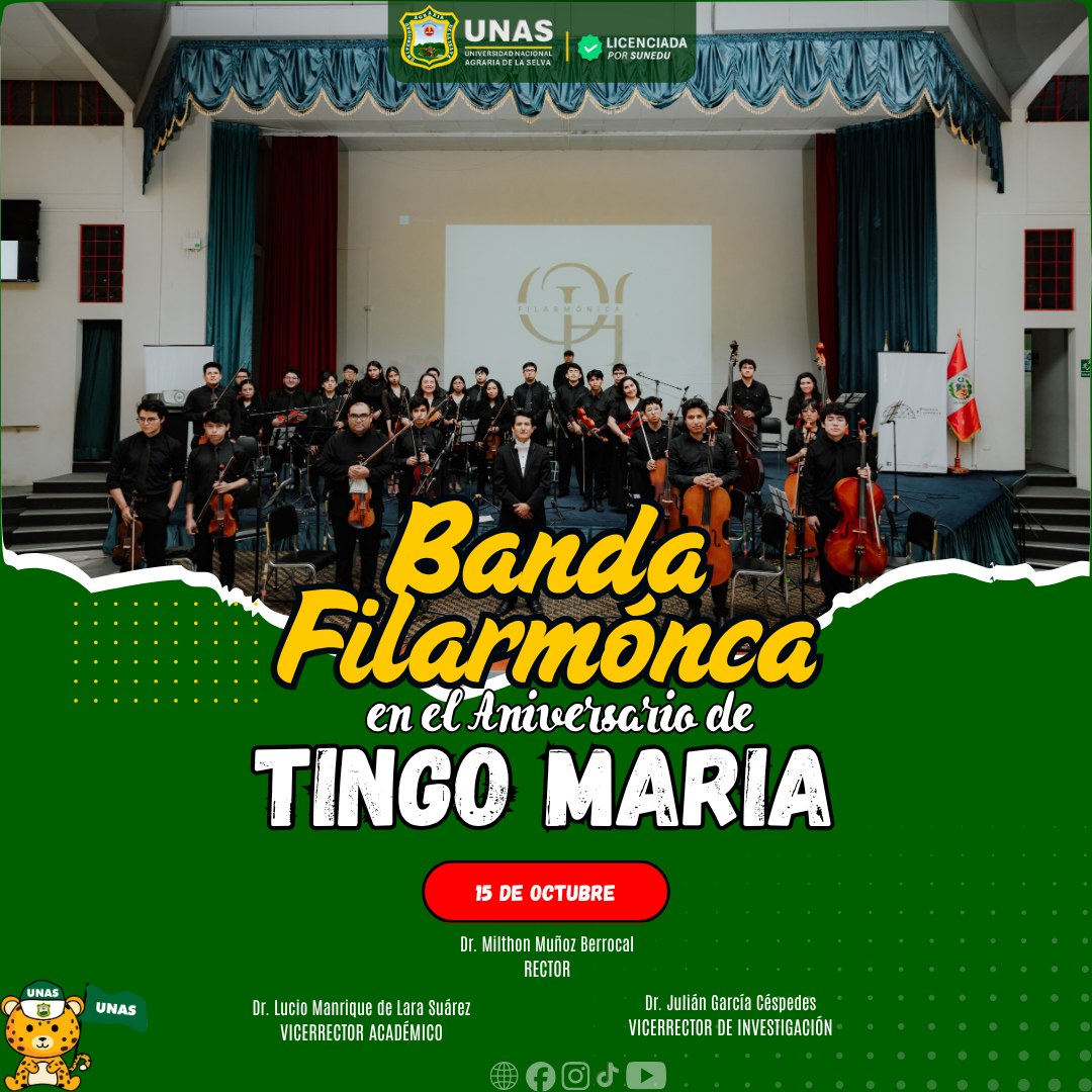 Con motivo de conmemorar el 87.º Aniversario de Fundación de la ciudad de Tingo María, la Orquesta Filarmónica de Huánuco ofrecerá una gran retreta musical en honor a esta fecha tan significativa para todos los tingaleses.