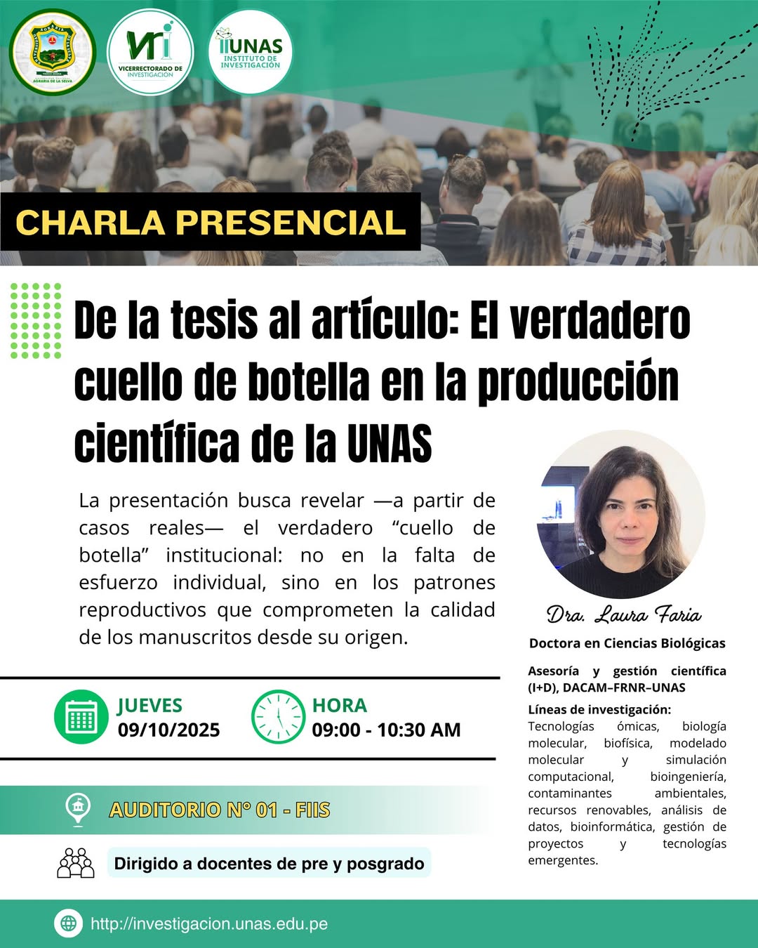 ๐ŸŸข Tema: โ€œDe la tesis al artรญculo: El verdadero cuello de botella en la producciรณn cientรญfica de la UNASโ€