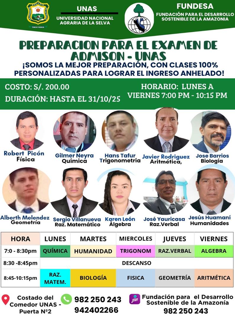 PREPARACIÓN PARA EL EXAMEN DE ADMISIÓN UNAS 2025: FUNDACIÓN PARA EL DESARROLLO SOSTENIBLE DE LA AMAZONÍA -FUNDESA -IMPULSA OPORTUNIDADES EDUCATIVAS.