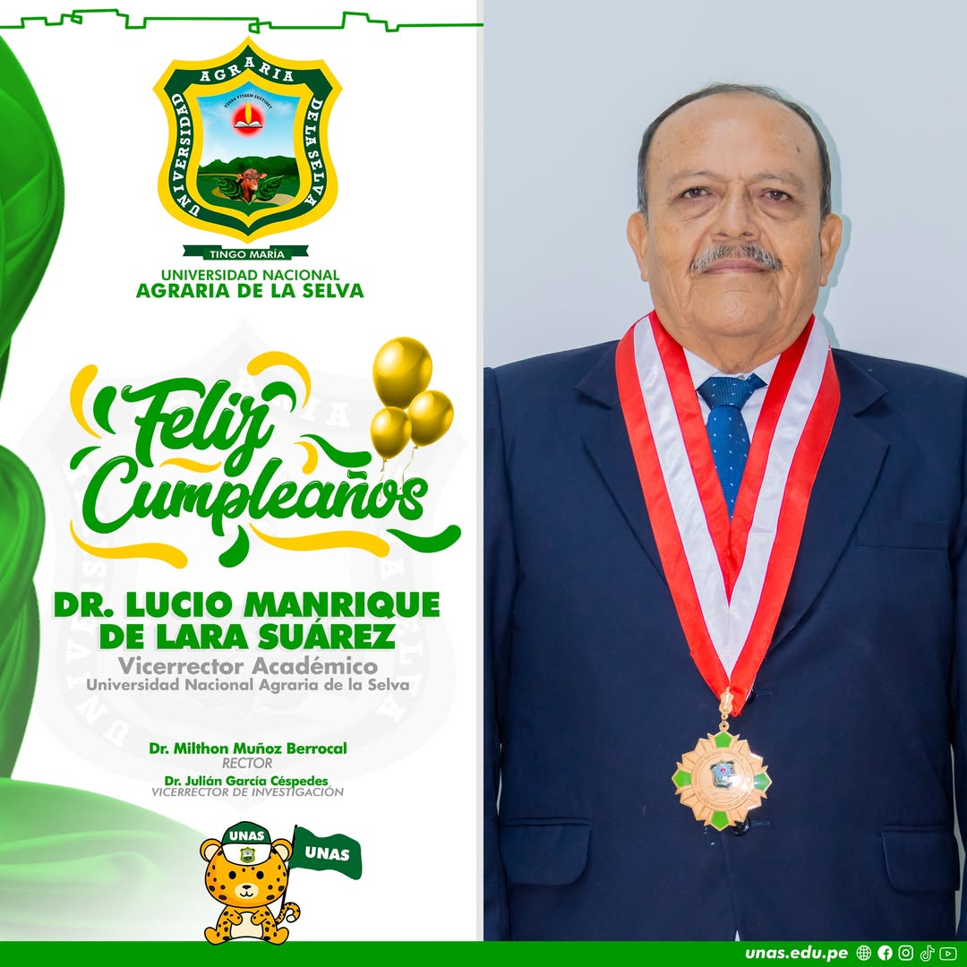 🔰 En esta fecha tan significativa, la Corporación Universitaria de la Universidad Nacional Agraria de la Selva expresa su más cálido y afectuoso saludo al Dr. Lucio Manrique de Lara Suárez, Vicerrector Académico de nuestra casa de estudios, al conmemorarse hoy un año más de vida.