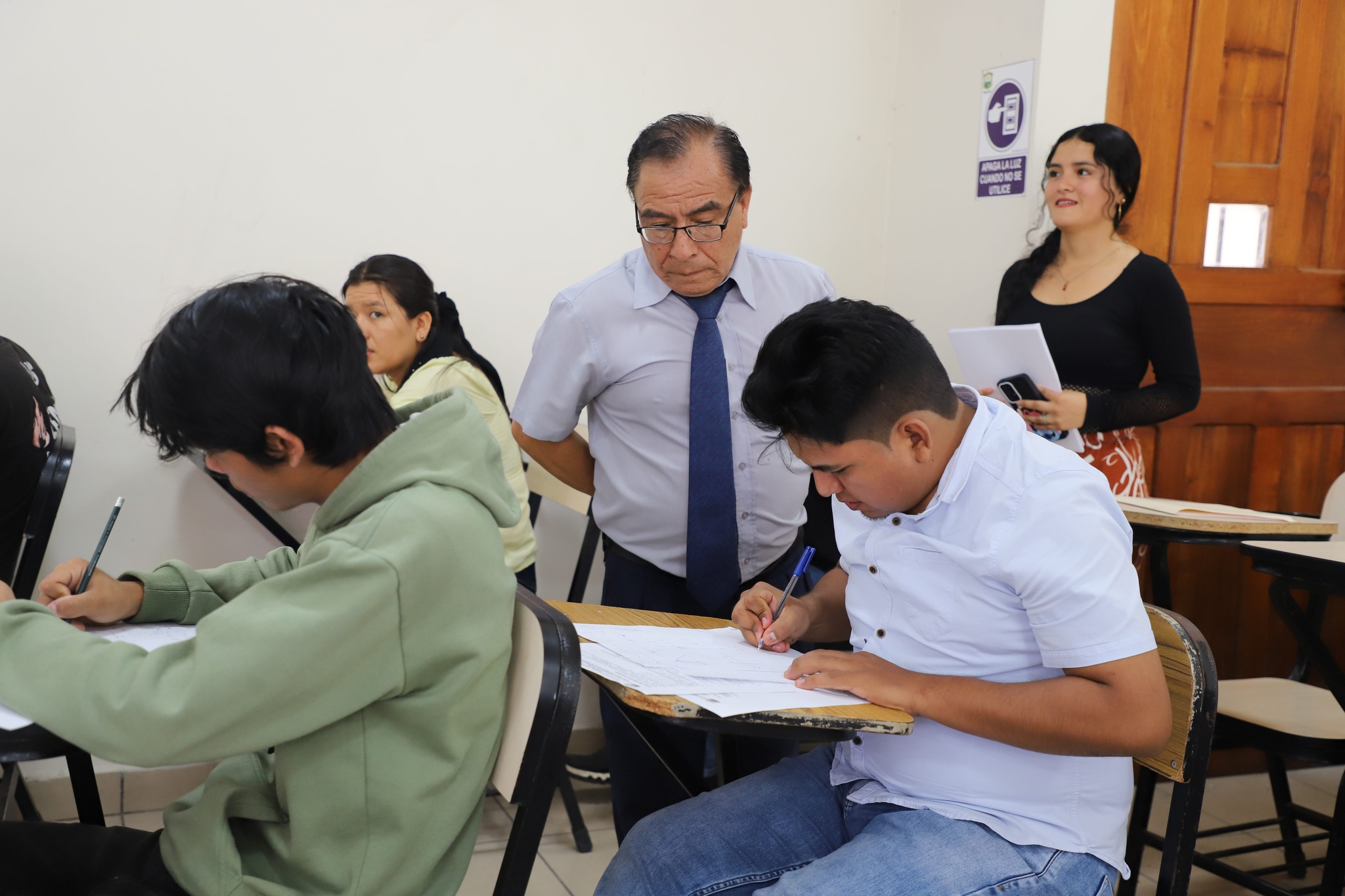 🟢En su recorrido por las aulas donde se desarrollaban las pruebas, el Decano de la Facultad de Ingeniería en Informática y Sistemas, Dr. Walter Bernuy Blanco, reafirmó su compromiso de seguir promoviendo actividades académicas de este nivel, que fortalecen la formación científica de los estudiantes.