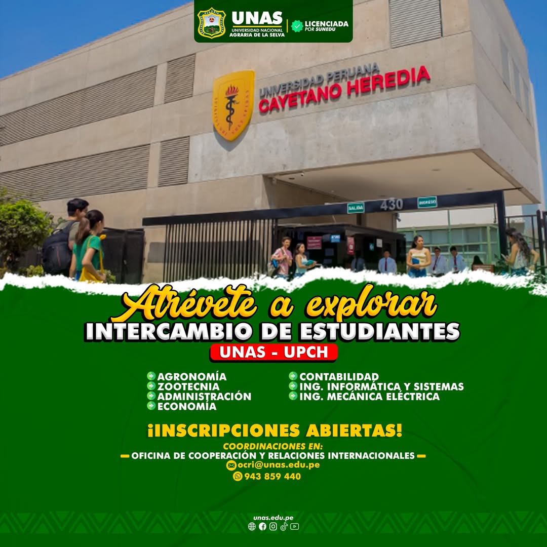 ๐ข Gracias al convenio entre la UNAS y la Universidad Privada Cayetano Heredia, podrรกs vivir un intercambio estudiantil que transformarรก tu forma de aprender y ver el mundo. ๐