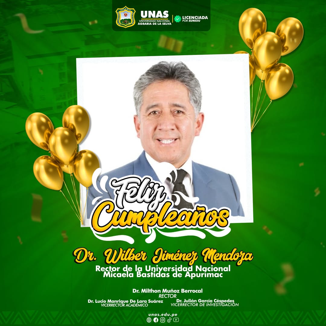 🔰 Las autoridades universitarias de la UNAS tienen el honor de extender las felicitaciones por el día de su cumpleaños al Rector de la Universidad Nacional Micaela Bastidas de Apurímac – Unamba, Dr. Wilber Jiménez Mendoza 🎊👏