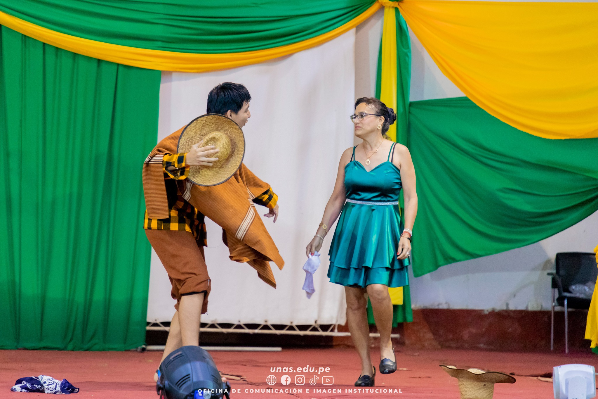๐ข En el marco de las celebraciones por los 62 aรฑos de creaciรณn institucional de la Universidad Nacional Agraria de la Selva -UNAS-, el Taller de Danzas de la casa superior de estudios BAJO LA DIRECCIรN DEL MAESTRO, Jaime Salazar Ponce, ofreciรณ una destacada presentaciรณn artรญstica que cautivรณ al pรบblico asistente durante la ceremonia central conmemorativa.