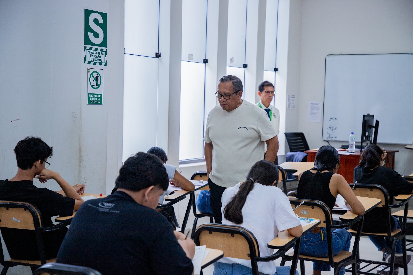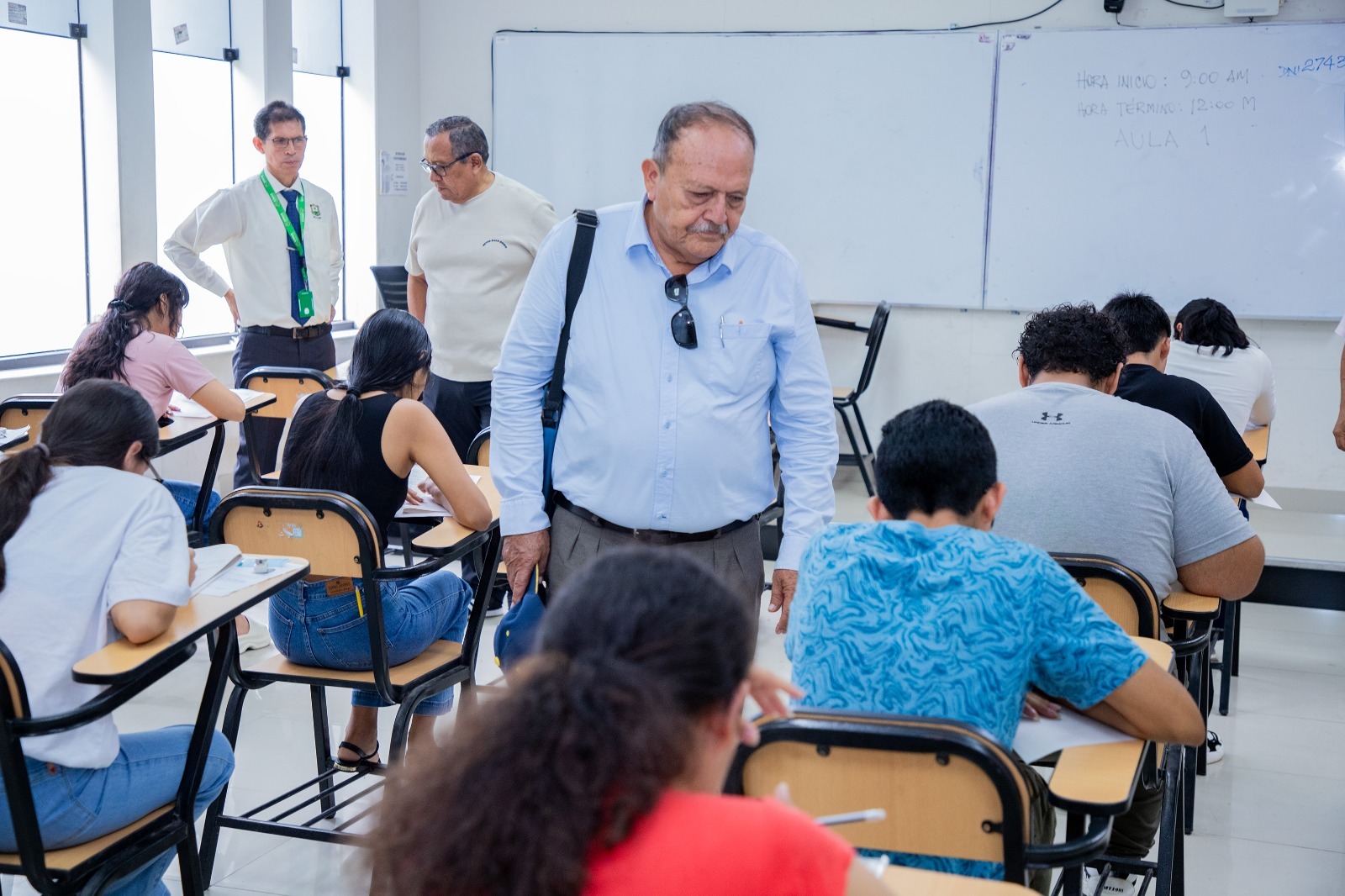 🟢El vicerrector Académico Dr. lucio Manrique de Lara Suárez, en todo momento estuvo presente inspeccionando desde el ingreso de los postulante a las aulas y en el desarrollo del examen extraordinario.