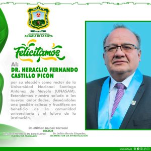 🔰 𝐒𝐚𝐥𝐮𝐝𝐨 𝐈𝐧𝐬𝐭𝐢𝐭𝐮𝐜𝐢𝐨𝐧𝐚𝐥 📃 🟢 La Universidad Nacional Agraria de la Selva – UNAS, a través de sus autoridades, expresa un fraternal saludo y reconocimiento al Dr. Heraclio Fernando Castillo Picón, por su reciente elección como Rector de la Universidad Nacional Santiago Antúnez de Mayolo (UNASAM). 🟢 ¡Nuestros mejores deseos de éxitos en esta nueva