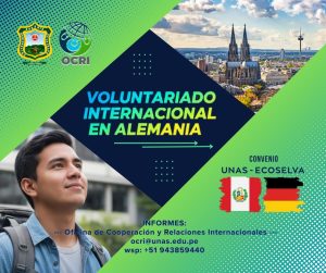 🔰 ¿𝗟𝗶𝘀𝘁𝗼 𝗽𝗮𝗿𝗮 𝘃𝗶𝘃𝗶𝗿 𝘂𝗻𝗮 𝗲𝘅𝗽𝗲𝗿𝗶𝗲𝗻𝗰𝗶𝗮 𝗾𝘂𝗲 𝘁𝗿𝗮𝗻𝘀𝗳𝗼𝗿𝗺𝗮𝗿𝗮́ 𝘁𝘂 𝘃𝗶𝗱𝗮? 🌍✨ ✅ Participa en el Voluntariado Internacional en Alemania y sé parte del cambio global 🌱. A través del convenio UNAS – ECOSELVA, podrás aprender, aportar y crecer personal y profesionalmente mientras descubres una nueva cultura. 🟢 Coordinaciones con la 𝙊𝙛𝙞𝙘𝙞𝙣𝙖 𝙙𝙚 𝘾𝙤𝙤𝙥𝙚𝙧𝙖𝙘𝙞ó𝙣 𝙮 𝙍𝙚𝙡𝙖𝙘𝙞𝙤𝙣𝙚𝙨