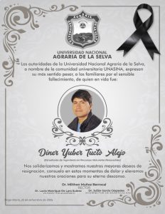 🕊 Las autoridades universitarias de la Universidad Nacional Agraria de la Selva, expresan sus más sentidas condolencias a la familia de 𝗗𝗶𝗻𝗲𝗿 𝗬𝘂𝗯𝗲𝗿 𝗧𝘂𝗰𝘁𝗼 𝗔𝗹𝗲𝗷𝗼 (Estudiante de Ingeniería en Recursos Naturales Renovables) Elevamos una oración para su eterno descanso (Q.E.P.D y D.D.G).🕊 . . . 𝙊𝙛𝙞𝙘𝙞𝙣𝙖 𝙙𝙚 𝘾𝙤𝙢𝙪𝙣𝙞𝙘𝙖𝙘𝙞𝙤𝙣𝙚𝙨 𝙚 𝙄𝙢𝙖𝙜𝙚𝙣 𝙄𝙣𝙨𝙩𝙞𝙩𝙪𝙘𝙞𝙤𝙣𝙖𝙡 Source