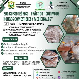 LANZAN CURSO TEÓRICO PRÁCTICO DE CULTIVO DE HONGOS COMESTIBLES Y MEDICINALES PARA DICIEMBRE – 2025. Organiza FUNDESA. 🟢El interés creciente por la producción sostenible y la medicina natural ha impulsado la organización del curso “Cultivo de Hongos Comestibles y Medicinales”, una capacitación teórico–práctica que se llevará a cabo los días 13 y 14 de diciembre