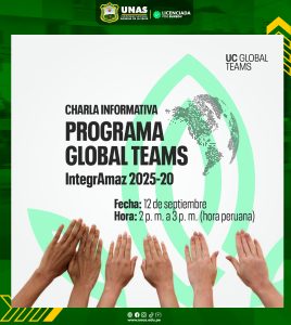 🔰𝗜𝗡𝗩𝗜𝗧𝗔𝗖𝗜Ó𝗡 𝗔 𝗟𝗔 𝗖𝗛𝗔𝗥𝗟𝗔 𝗜𝗡𝗙𝗢𝗥𝗠𝗔𝗧𝗜𝗩𝗔 𝗗𝗘𝗟 𝗣𝗥𝗢𝗚𝗥𝗔𝗠𝗔 𝗚𝗟𝗢𝗕𝗔𝗟 𝗧𝗘𝗔𝗠𝗦 🟢El Programa Global Teams es una iniciativa académica de universidades amazónicas que reúne a estudiantes de distintas nacionalidades y carreras para colaborar en equipos multidisciplinarios y multiculturales. El objetivo es aplicar la metodología Design Thinking y otras herramientas para encontrar soluciones sostenibles a problemas globales vinculados