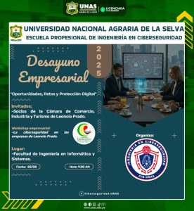 🔰La Escuela Profesional de Ingeniería en Ciberseguridad de la Universidad Nacional Agraria de la Selva organiza la 𝗦𝗲𝗺𝗮𝗻𝗮 𝗱𝗲 𝗹𝗮 𝗖𝗶𝗯𝗲𝗿𝘀𝗲𝗴𝘂𝗿𝗶𝗱𝗮𝗱 𝟮𝟬𝟮𝟱 “𝗢𝗽𝗼𝗿𝘁𝘂𝗻𝗶𝗱𝗮𝗱𝗲𝘀, 𝗥𝗲𝘁𝗼𝘀 𝘆 𝗣𝗿𝗼𝘁𝗲𝗰𝗰𝗶ó𝗻 𝗗𝗶𝗴𝗶𝘁𝗮𝗹” que se llevará a cabo los días 28 y 29 de agosto de 2025. 🟢Este evento está dirigido a estudiantes universitarios de Ciberseguridad, estudiantes de nivel secundario y